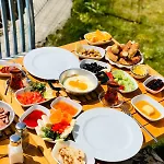 Bezpłatne śniadanie jest podawane codziennie rano. Podczas pobytu w hotelu goście mogą wybierać spośród pobliskich lokali gastronomicznych, takich jak restauracja Sir Winston Bistro, w odległości 5-minutowego spaceru, czy restauracja Omur Pide Kebap Salonu w odległości 6 min spacerem.